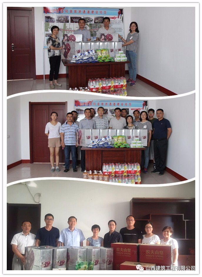 - 為保障項(xiàng)目公司工作人員的身心健康,營造溫馨愉悅的工作氛圍,7月3日至6日,產(chǎn)業(yè)發(fā)展事業(yè)部總經(jīng)理劉書平、工會(huì)主席羅艷芳赴祁縣廣濟(jì)建設(shè)管理有限公司、祁縣廣惠市政建設(shè)工程有限公司和運(yùn)城市姚暹渠空港段工程項(xiàng)目管理有限公司開展“夏送清涼”慰問,為三個(gè)項(xiàng)目公司發(fā)放了夏涼被、礦泉水、菊花茶、冰糖、藿香正氣水等防暑降溫慰問品,為在高溫下依然堅(jiān)守工作崗位的一線員工帶去了組織的清涼和關(guān)懷! (產(chǎn)業(yè)發(fā)展事業(yè)部 樊青麗)
