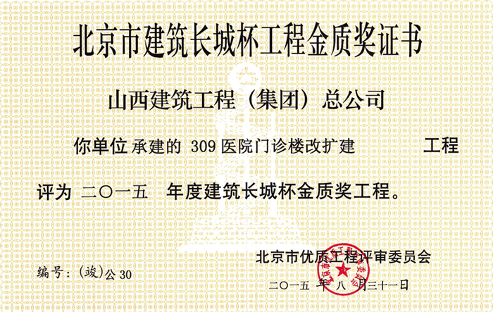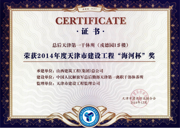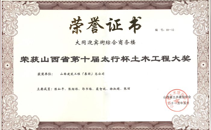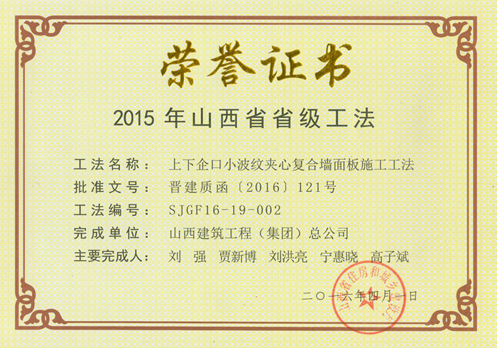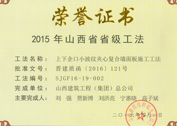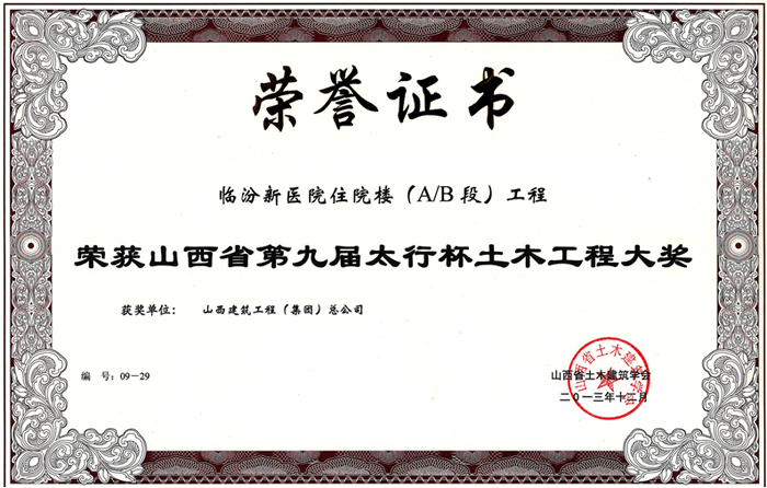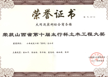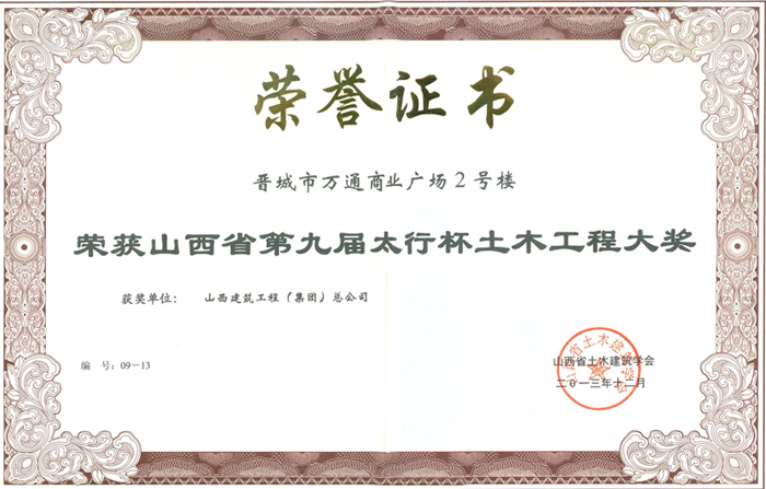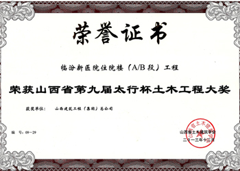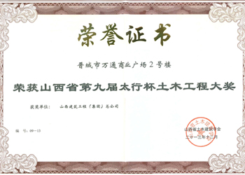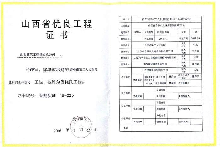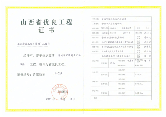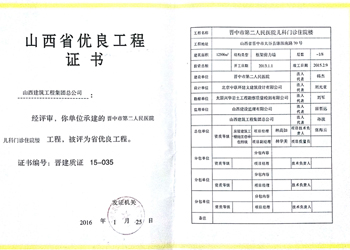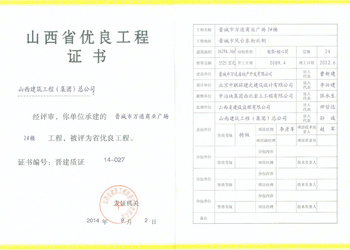 山西省優(yōu)良工程證書