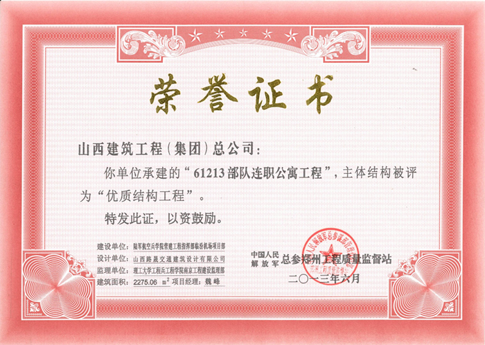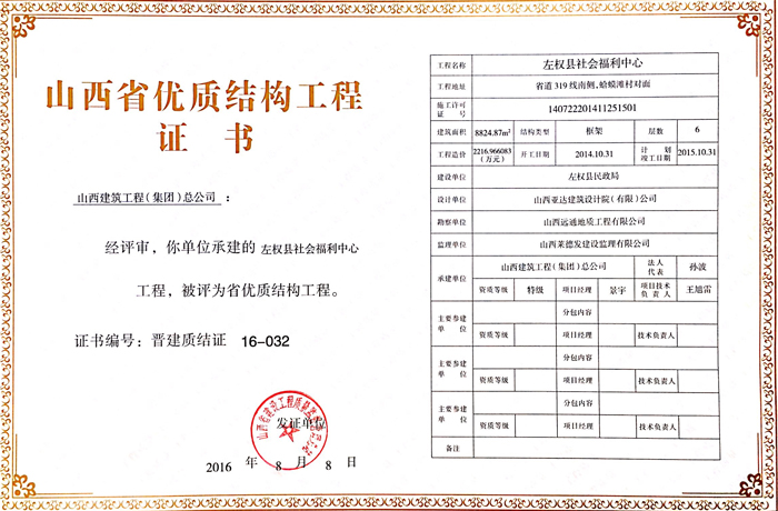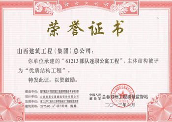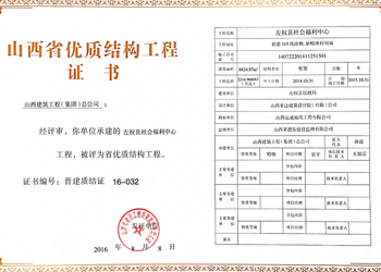 山西省優(yōu)質結構工程證書