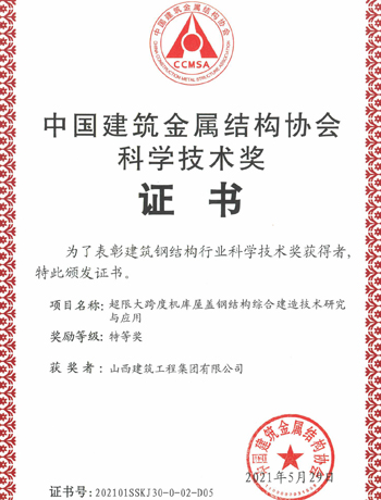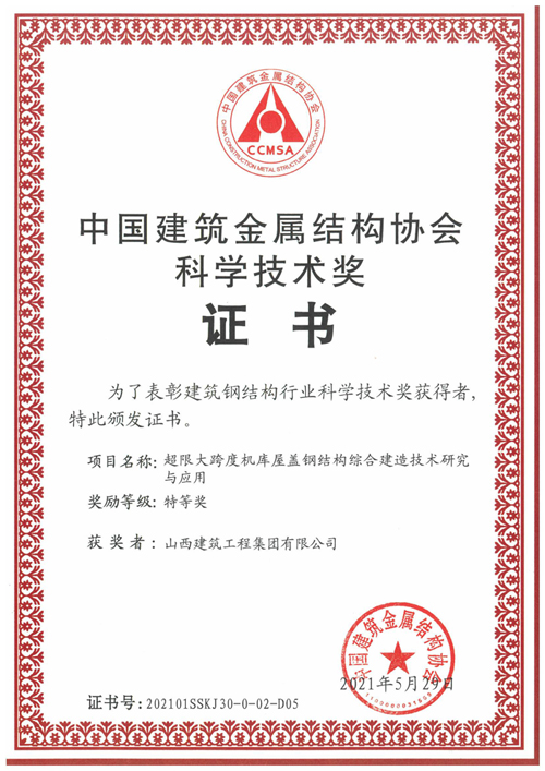• 建造技術(shù)研究與應(yīng)用獲得中國建筑金屬結(jié)構(gòu)協(xié)會技術(shù)獎