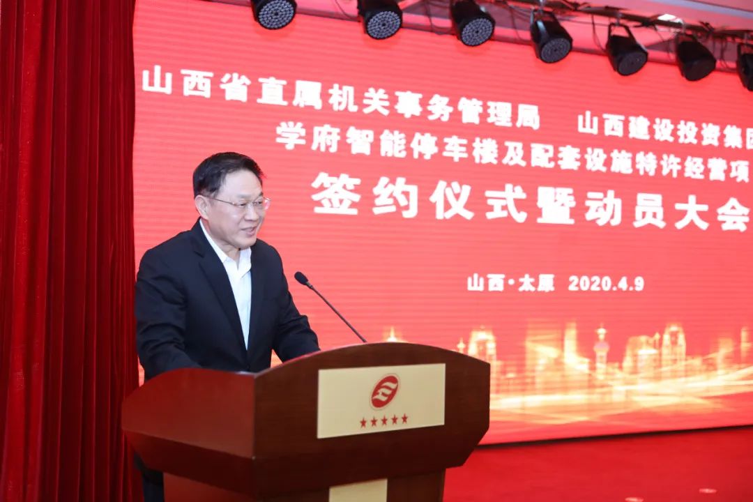4月9日上午,太原學府智能停車樓及配套建筑特許經(jīng)營項目簽約儀式暨動員大會在太原麗華大酒店舉行。當日,省直屬機關(guān)事務(wù)管理局副局長王敏與山西建投建工集團黨委書記、董事長倪華光分別代表雙方簽訂了《特許經(jīng)營協(xié)議》《項目管理目標責任書》,標志著項目大干快上、高效推進正式拉開帷幕。
