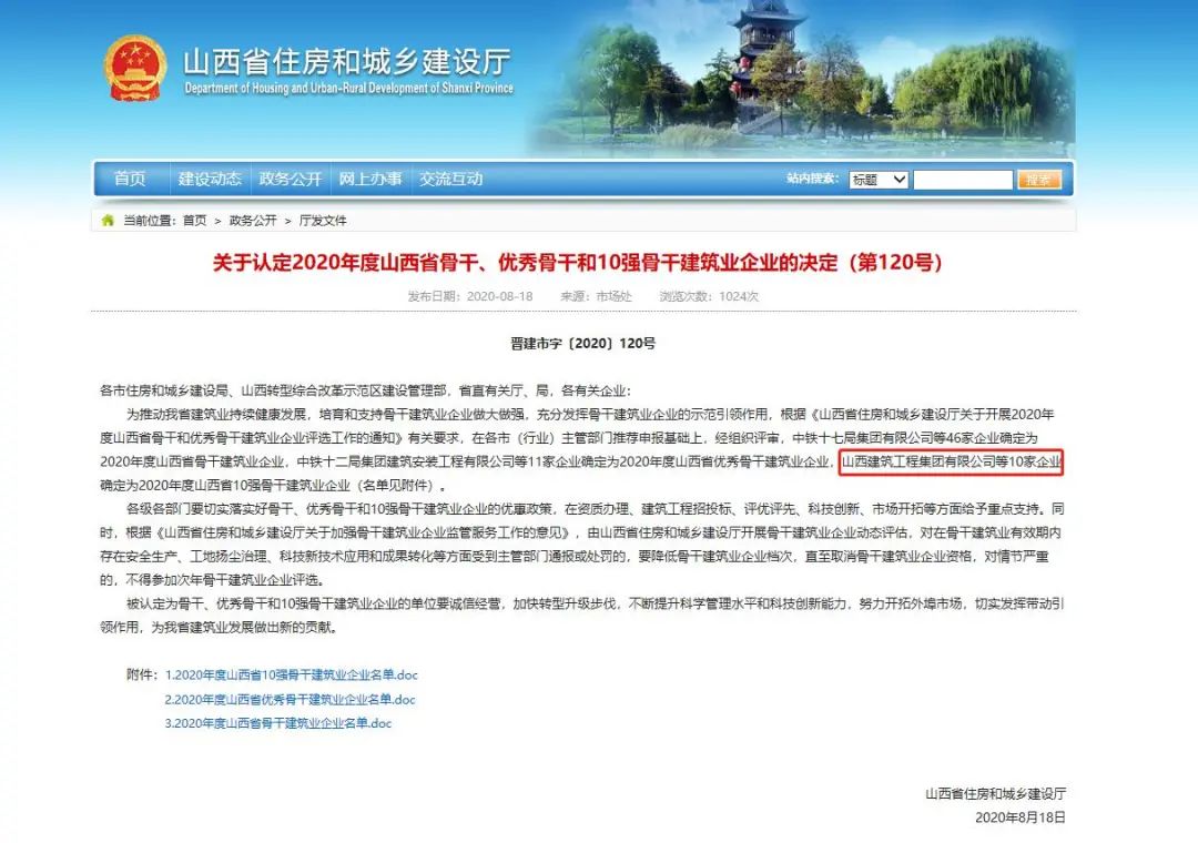 ?山西建投建工集團(tuán)被認(rèn)定為山西省十強(qiáng)骨干建筑業(yè)企業(yè)