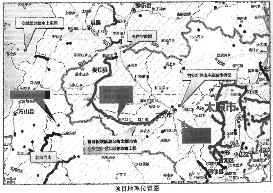 本項(xiàng)目起點(diǎn)連接了古交市3A級景區(qū)紅豆山莊、千佛寺、水泉寨公園等景區(qū)道路,沿線有晉綏八分區(qū)舊址、老農(nóng)文化園基地等旅游景點(diǎn),終點(diǎn)連接了婁煩境內(nèi)鄉(xiāng)道塔米線。項(xiàng)目的實(shí)施,將完善古交市境內(nèi)的旅游交通公路網(wǎng),為古交市的經(jīng)濟(jì)轉(zhuǎn)型打下良好的基礎(chǔ)。