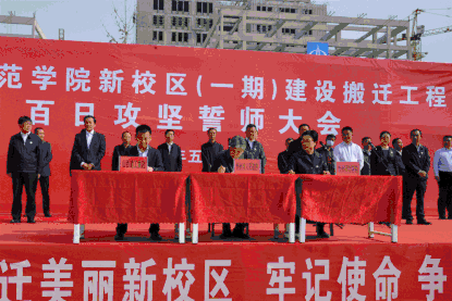5月11日,山西建投建工集團承建的忻州師范學院新校區(qū)項目舉行百日攻堅誓師大會,動員廣大建設者接續(xù)奮斗、再創(chuàng)佳績,確保新校區(qū)8月1日達到試運營條件,9月1日正式投用。忻州市委副書記、市長朱曉東,忻州師院黨委書記王軍,忻州師院黨委副書記、院長張虎芳,忻州市政府一級巡視員武憲堂、副市長、秘書長郭寶厚,山西建投集團副總經(jīng)理倪華光,忻州師院黨委副書記喬永生、黨委常委、副院長李丹、紀委書記郝鵬飛、黨委常委、副院長張文玉,忻州市副秘書長張艮生,山西建工集團黨委書記、董事長邢六斤,忻州市政府辦公室二級調(diào)研員安樹俊,忻州市市直有關部門、忻府區(qū)政府負責人員,忻州師院相關部門負責人及師生代表,施工單位、監(jiān)理單位、設計單位代表等參加大會。大會由武憲堂主持。