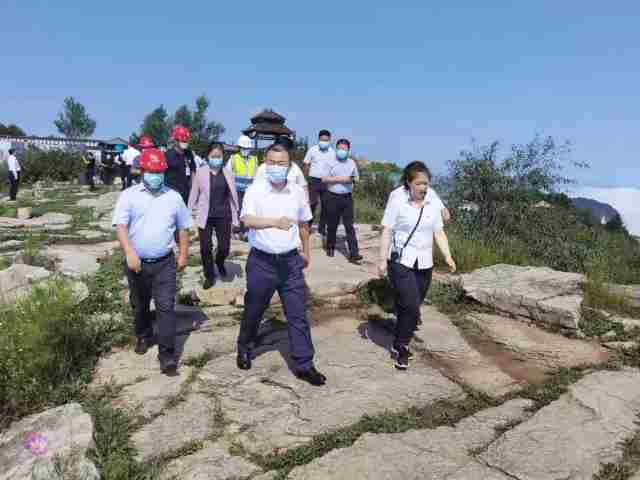薛明耀一行先后前往王莽嶺景區(qū)精神展覽館、極頂?shù)巧郊碍h(huán)形步道、錫崖溝掛壁公路等項目現(xiàn)場實地查看了整體建設(shè)情況,并就當(dāng)前項目各項工作提出要求。