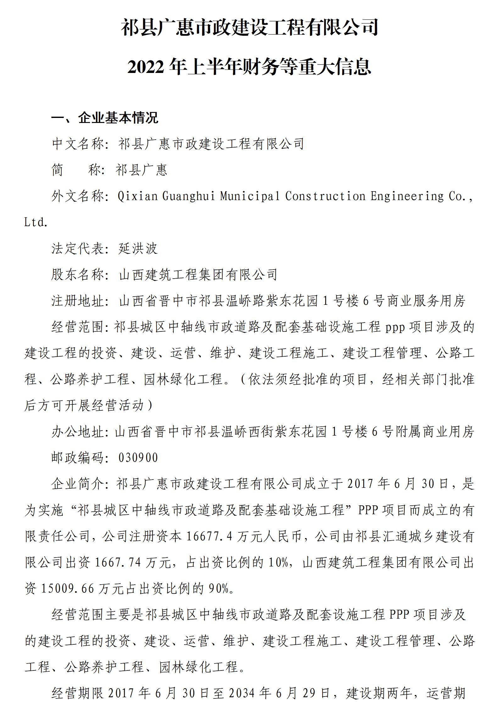 祁縣廣惠市政建設工程有限公司2023年上半年財務等重大信息 山西省建筑業(yè)協(xié)會會長王國正一行蒞臨白求恩國際和平醫(yī)院新建門診樓項目指導創(chuàng)優(yōu)工作 公司權益管理部組織學習“公司基本法律制度” 公司召開應收賬款“雙清”促進會 公司安全生產(chǎn)部組織召開華北分部中石化項目啟動會 山西建筑設備機具租賃有限公司2022年上半年財務等重大信息