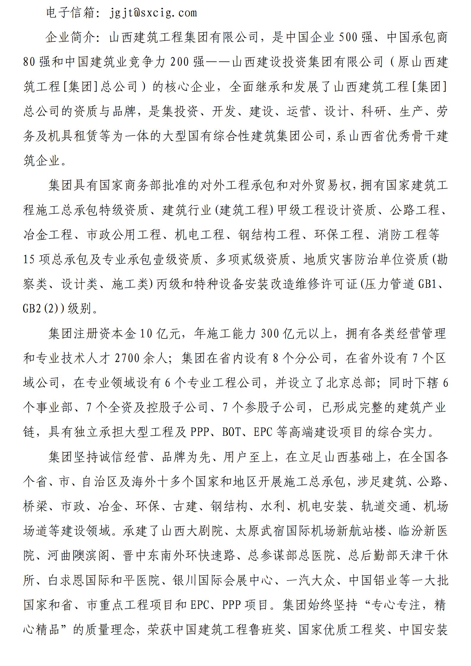 山西建工集團(tuán)在建投集團(tuán)一屆六次“雙代會”上榮獲多項(xiàng)集體及個人獎項(xiàng) 公司工會開展對標(biāo)學(xué)習(xí)交流 公司舉行后備干部選拔考試 公司組織重點(diǎn)項(xiàng)目資金模塊信息化操作培訓(xùn)等 太原市副市長張齊山深入三分公司鼎盛國際建設(shè) 項(xiàng)目對安全文明和綠色施工進(jìn)行檢查指導(dǎo) 中國建筑蒞臨山西建工集團(tuán)考察交流