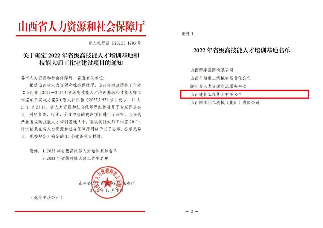 近日,山西省人力資源和社會(huì)保障廳印發(fā)了《關(guān)于確定2022年省級(jí)高技能人才培訓(xùn)基地和技能大師工作室建設(shè)項(xiàng)目的通知》,山西建投建工集團(tuán)成功獲評(píng)“2022年省級(jí)高技能人才培訓(xùn)基地”。