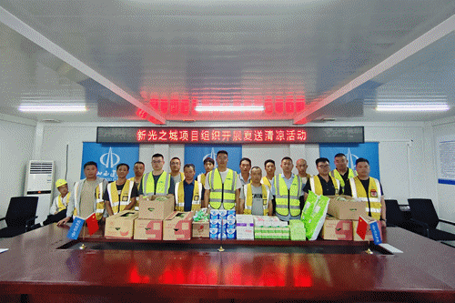 7月18日,第三工程公司主要負(fù)責(zé)人一行走進(jìn)印尼項(xiàng)目開展“夏送清涼”慰問(wèn)活動(dòng),慰問(wèn)組一行先后來(lái)到德天焦化項(xiàng)目、旭陽(yáng)偉山新能源項(xiàng)目、污水處理廠項(xiàng)目詳細(xì)詢問(wèn)了一線工人的生產(chǎn)生活狀況及防暑降溫措施,為奮戰(zhàn)在一線的施工人員送去清涼與關(guān)懷。