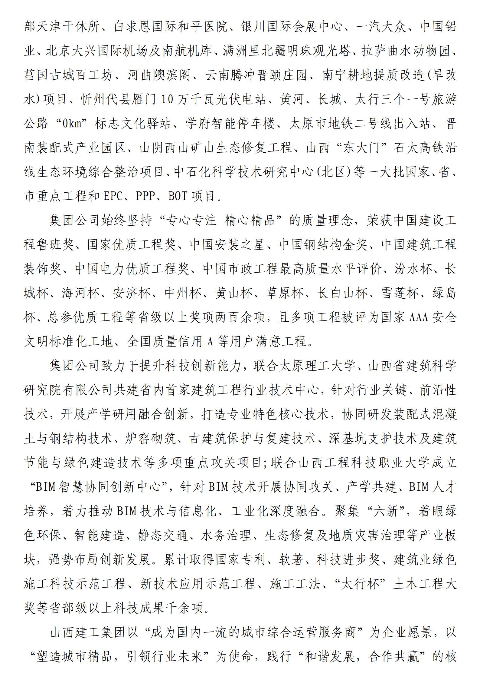 晉城丹河華達(dá)房地產(chǎn)開發(fā)有限公司2023年一季度財(cái)務(wù)等重大信息 山西建投建工集團(tuán)丹河新城金村起步區(qū)水東村棚戶區(qū)(城中村)改造項(xiàng)目二期工程主體結(jié)構(gòu)全部封頂 運(yùn)城市姚暹渠空港段工程項(xiàng)目管理有限公司2022年上半年財(cái)務(wù)等重大信息 公司與山西建投組成聯(lián)合體,順利簽約15.2億PPP項(xiàng)目 山西建投集團(tuán)黨委第一巡察組巡察山西建工集團(tuán)、煤規(guī)院集團(tuán)黨委工作動(dòng)員會召開 公司舉辦材料管理人員同業(yè)務(wù)崗位競賽