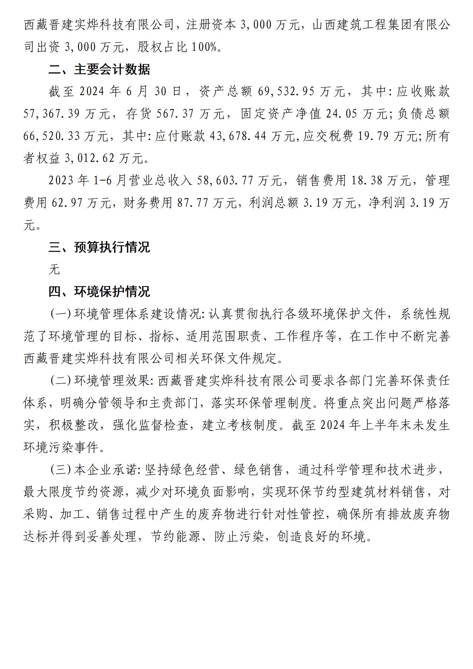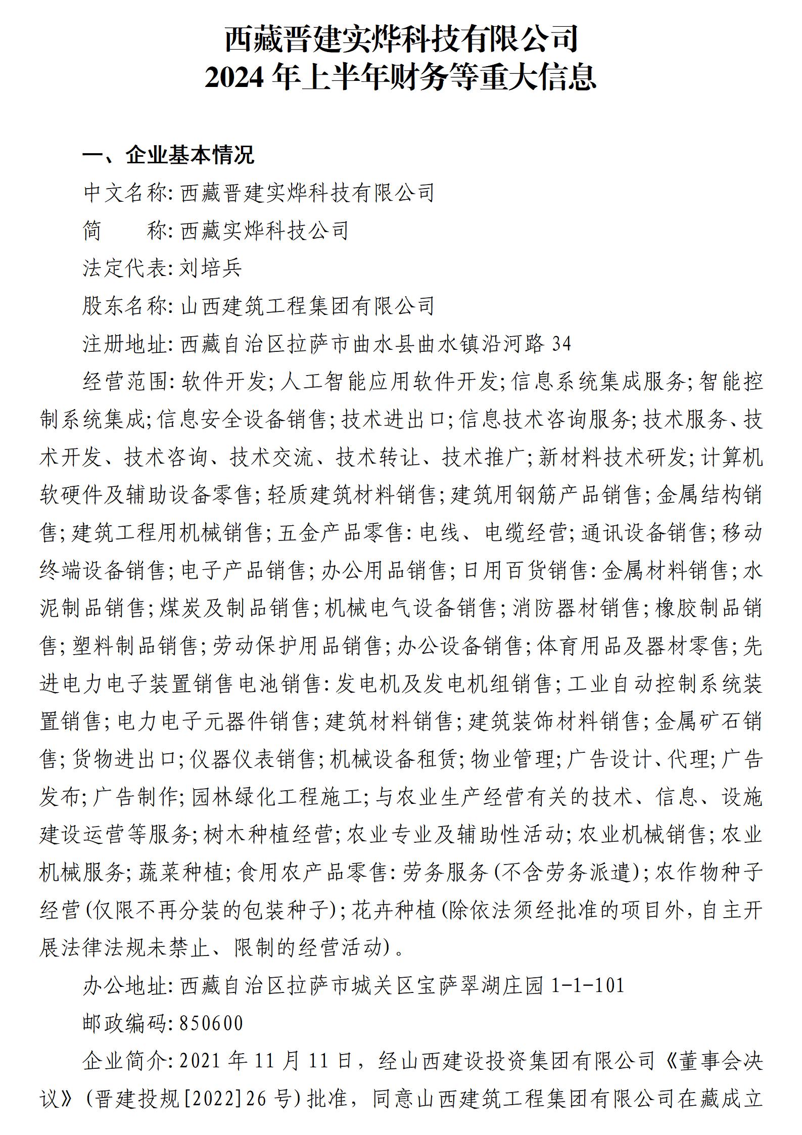 西藏晉建實燁科技有限公司2024年上半年財務(wù)等重大信息