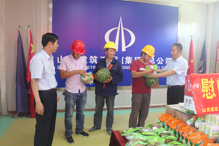 - 為推動重點項目建設,保障一線員工身心健康,助推“安全生產月”活動深入開展,6月15日,山西建筑工程有限公司工會主席向英華、副主席黃晉東一行帶著公司領導和工會的深情厚誼,對路橋金澤華府項目部職工和勞務人員進行了“夏送清涼”慰問,并為項目授“工人先鋒號”旗,為在高溫下堅守崗位、辛勤工作的一線職工送去關心和清涼。
