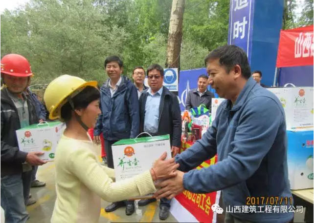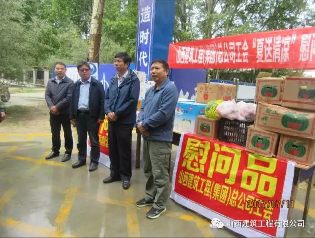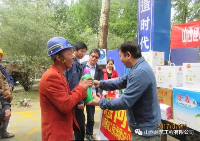 7月11日,集團(tuán)總公司工會“夏送清涼”慰問活動在山西建筑工程有限公司西南分部西藏地區(qū)曲水動物園項目舉行。集團(tuán)總公司工會副主席胡春栓、公司工會副主席黃晉東一行來到曲水項目施工現(xiàn)場慰問一線職工,讓項目職工真正感受到集團(tuán)總公司的關(guān)懷、工會組織的關(guān)心。胡主席一行為該項目50余名職工發(fā)放了“清涼包”:迷彩服、水果、養(yǎng)生壺、洗漱用品及各種生活用品等防暑降溫物品,發(fā)放物資價值2萬余元。隨后,胡主席一行還深入查看了一線職工的工作和生活環(huán)境,與一線職工親切交流,他叮囑大家要勞逸結(jié)合,注意安全,并要求分部及項目部做好防暑降溫措施,保證食堂飲食衛(wèi)生,確保職工安全度夏、清涼度夏。