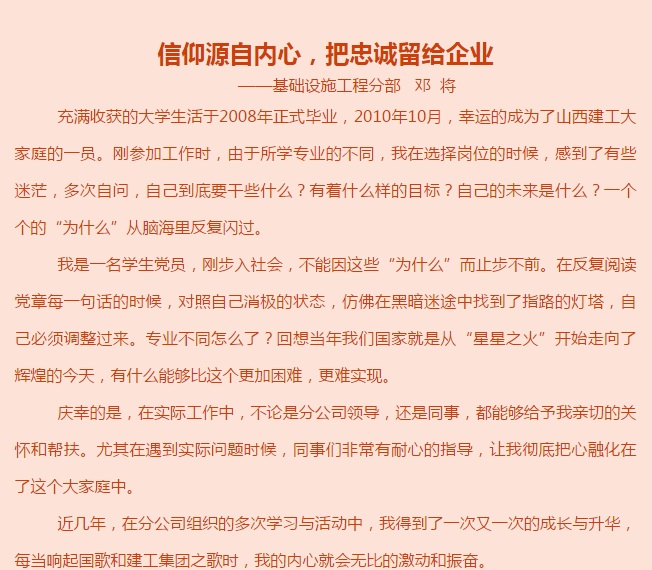 山西建投建工集團(tuán)召開廉潔文化進(jìn)項(xiàng)目暨“清風(fēng)廉潔潤心間”廉潔書畫巡展啟動(dòng)會(huì) 喜迎“雙代會(huì)”!山西建投建工集團(tuán)云南師宗煤焦化項(xiàng)目順利完成裝煤出焦 聚焦5大亮點(diǎn),挑戰(zhàn)全面升級!媒體素養(yǎng)實(shí)戰(zhàn)訓(xùn)練營今天正式啟幕…… 【清廉建工】——山西建工反腐倡廉教育宣傳月活動(dòng)啟動(dòng) 紙箋傳心意 行動(dòng)顯擔(dān)當(dāng)|山西建投建工集團(tuán)太原市人民醫(yī)院(晉源區(qū)人民醫(yī)院)遷建工程項(xiàng)目二期工程受到業(yè)主表揚(yáng) 運(yùn)城市姚暹渠空港段工程項(xiàng)目管理有限公司2023年上半年財(cái)務(wù)等重大信息