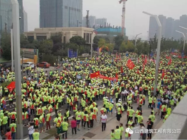 比賽過程中,公司百人團呈現(xiàn)了最佳的精神面貌與團隊協(xié)作精神,大家一路高舉“山西建筑工程有限公司”的旗幟,相互鼓勵,相互加油,憑著激情和勇氣全部完成了迷你馬拉松賽程,勝利的喜悅洋溢在每個人的臉上。