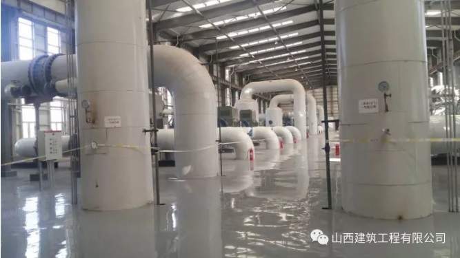 古交興能電廠至太原供熱主管道及中繼能源站工程1#泵站工程位于山西古交市河口鎮(zhèn)寨上村,占地面積約50畝,其中包含泵房、生產(chǎn)辦公樓、輔助樓等;泵房?jī)?nèi)設(shè)置8臺(tái)回水泵,單體泵功率達(dá)到1250kw,單體泵長(zhǎng)6m,寬4m,高約5m;供熱管管徑達(dá)到1.4m,實(shí)現(xiàn)雙供雙回,每根管線的流量達(dá)每小時(shí)1.5萬(wàn)噸。該工程施工中應(yīng)用了建筑業(yè)10項(xiàng)新技術(shù)(2010版)9大項(xiàng)19子項(xiàng),其它新技術(shù)5項(xiàng)。其中應(yīng)用突出的有:泵房為門(mén)式鋼架結(jié)構(gòu),通過(guò)鋼結(jié)構(gòu)深化設(shè)計(jì)技術(shù),減少鋼材浪費(fèi),節(jié)約人工,提高施工效率;應(yīng)用大管道閉式循環(huán)沖洗技術(shù),環(huán)保節(jié)能達(dá)到?jīng)_洗質(zhì)量要求;在建筑節(jié)能應(yīng)用方面,外保溫采用了粘貼式外墻外保溫隔熱系統(tǒng)施工技術(shù),門(mén)窗采用鋁合金門(mén)窗斷橋技術(shù),達(dá)到了節(jié)能保溫的目的;大直徑管道和其他水泵設(shè)備的安裝技術(shù),保證設(shè)備運(yùn)行平穩(wěn)。