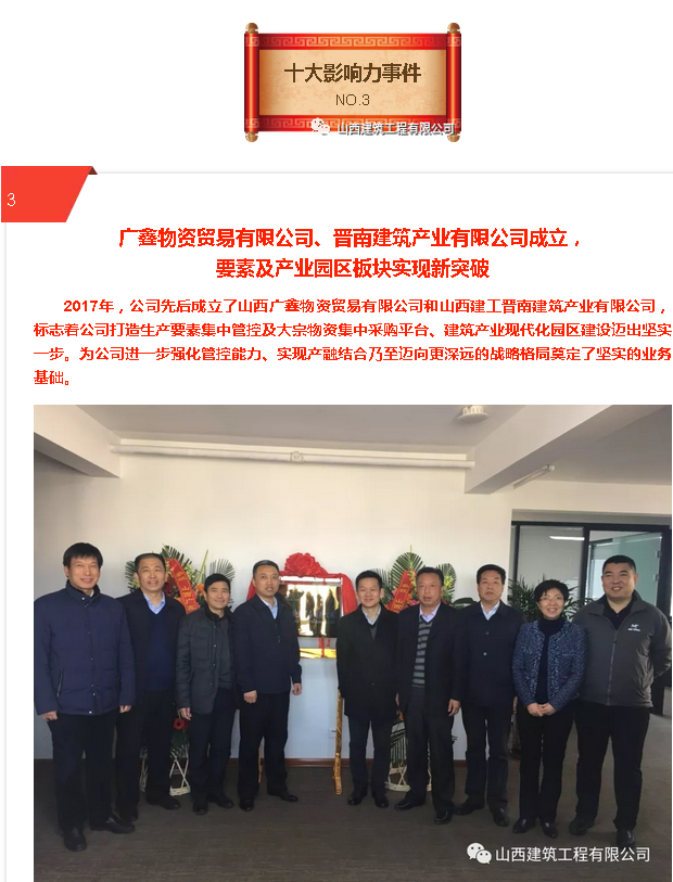 山西建筑工程有限公司2017年“十大影響力事件”!