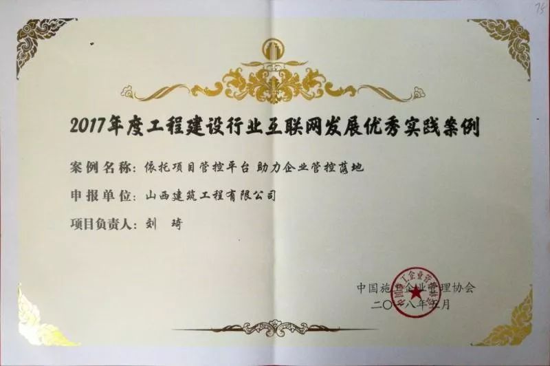 山西建筑工程有限公司項目管理系統(tǒng)被評為“2017年度工程建設行業(yè)互聯網發(fā)展優(yōu)秀實踐案例”