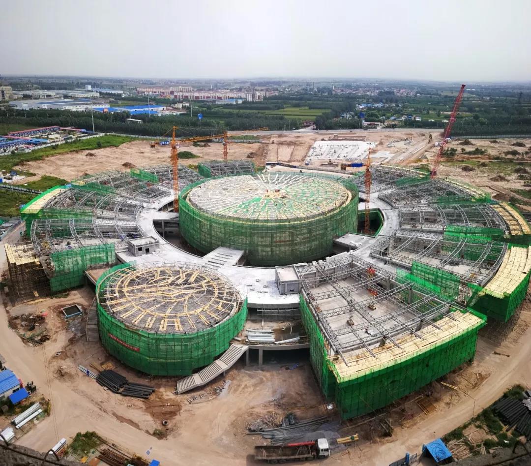 8月22日,隨著最后一根桁架焊接結(jié)束,山西省農(nóng)產(chǎn)品國際交易中心鋼結(jié)構(gòu)工程順利封頂,施工現(xiàn)場一片歡騰。為了確保晉中市首屆現(xiàn)代農(nóng)業(yè)博覽會在此召開,山西建工集團鋼結(jié)構(gòu)二分公司和東北公司260余名員工戰(zhàn)高溫、斗酷暑、通力合作、不言辛苦,通過20多天夜以繼日的高強度、高效率工作,終于完成了這個艱巨的任務(wù)。山西省農(nóng)產(chǎn)品國際交易中心是山西省農(nóng)業(yè)廳、商務(wù)廳重點扶持項目,也是山西省重點工程項目。由于晉中市首屆現(xiàn)代農(nóng)業(yè)博覽會計劃9月中旬在此召開,需要提前完工,工期大幅縮減。7月25日,一場保進度的“戰(zhàn)役”正式打響。交易中心展廳是圓形建筑,設(shè)計像一朵盛開的鮮花,由中間圓形的“花蕊”和周圍十片扇形的“花瓣”組成。7月25日,土建工程和“花蕊”部分的鋼結(jié)構(gòu)剛剛完成。原計劃十片“花瓣”流水作業(yè)一片一片施工,現(xiàn)在為了節(jié)省工期只能平行作業(yè),同時施工。相當于單位時間內(nèi)需要的材料、設(shè)備、人工增長了9倍。面對困難,山西建工集團領(lǐng)導班子成員多次親臨施工一線召開現(xiàn)場辦公會。集團黨委書記、董事長倪華光號召項目全體員工,要想盡辦法,克服困難,發(fā)揚山西建工鐵軍精神,做到白天、晚上一個樣,有電、沒電一個樣,晴天、雨天一個樣,為集團的品牌和榮譽而戰(zhàn)。