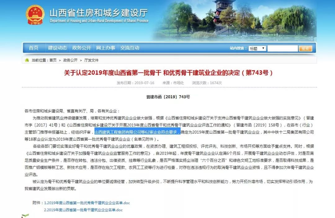 品牌認(rèn)可 示范引領(lǐng)——山西建工連續(xù)三年被認(rèn)定“山西省優(yōu)秀骨干建筑業(yè)企業(yè)”