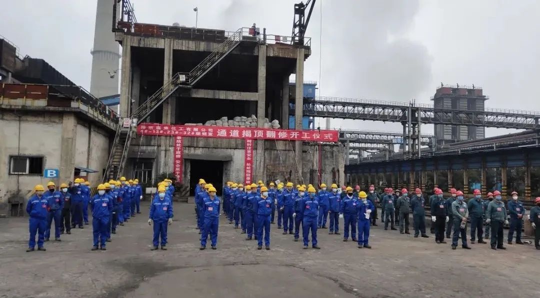 云南曲靖師宗煤焦化工有限公司5.5米搗固焦?fàn)t四十道燃燒室通道揭頂翻修工程,填補(bǔ)了集團(tuán)公司爐窯分公司熱態(tài)焦?fàn)t檢修修復(fù)的空白,同時(shí)施工面臨生產(chǎn)與檢修交叉進(jìn)行,施工場(chǎng)地窄小、技術(shù)難度大、安全風(fēng)險(xiǎn)相對(duì)較高等諸多難點(diǎn)。3月15日,隨著兩臺(tái)吊車(chē)開(kāi)始吊裝作業(yè),該工程正式拉開(kāi)施工序幕,這也是集團(tuán)公司第一個(gè)在該領(lǐng)域?qū)嵭许?xiàng)目管理團(tuán)隊(duì)職業(yè)化的項(xiàng)目。